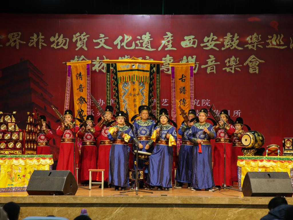 西安鼓乐始于汉,兴于隋,盛于唐,是唐代宫廷的“唐大曲”,自唐及今已流传1300余年,是我国境内迄今发现并保存最完整的大型民间器乐乐种之一。因其曲调丰富、形式严谨、风格鲜明,被国际音乐界誉为“中国古代的交响乐”。