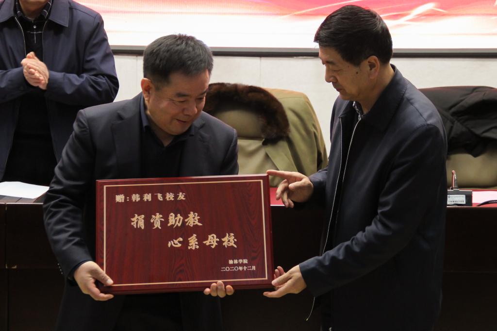 韩利飞是我校中进1984级校友,创业成功不忘回报母校,于2019年在我校基金会设立“韩利飞奖学金”和“韩利飞校友基金”,分四年向我校捐赠50万元,其中20万用于奖励榆林学院2020级全日制在读优秀研究生,30万用于支助我校基金(校友)办开展校友相关工作。