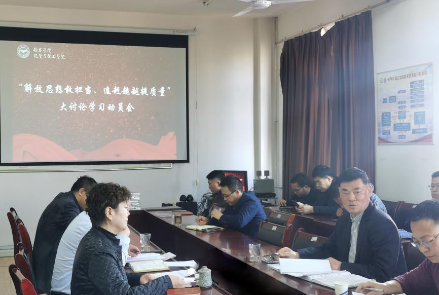 为贯彻落实好《中共榆林学院委员会关于在全校开展“解放思想敢担当、追赶超越提质量”大讨论的通知》要求,化学与化工学院党总支精心组织安排,围绕我校“十四五”规划目标、2021年“追赶超越”专项任务和院系工作实际,分别在中心组和全体党员大会中展开学习研讨。
