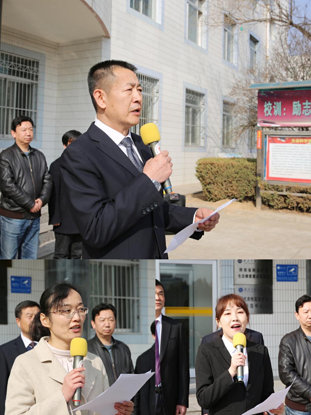 我校生命科学学院院长毕台飞,教师代表王雯,学生代表秦博雅分别发言