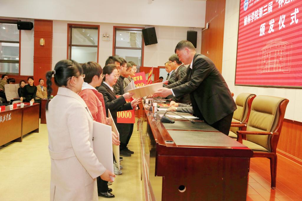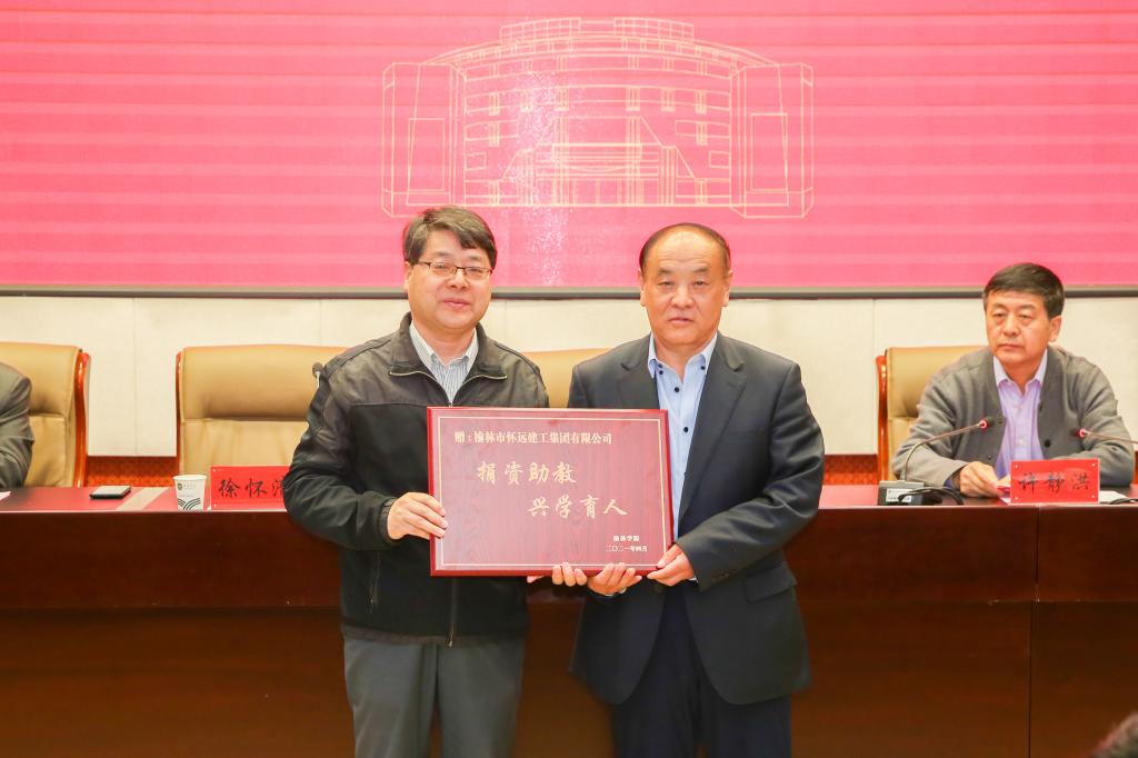 徐怀清介绍了怀远建工集团的发展情况,并对同学们表达了美好祝愿。他表示,随着企业进一步壮大发展,还将采取更多的形式与渠道,投入更多资金来支持、资助教育事业,为榆林高等教育发展,特别是为榆林学院建设高水平应用型大学贡献力量。