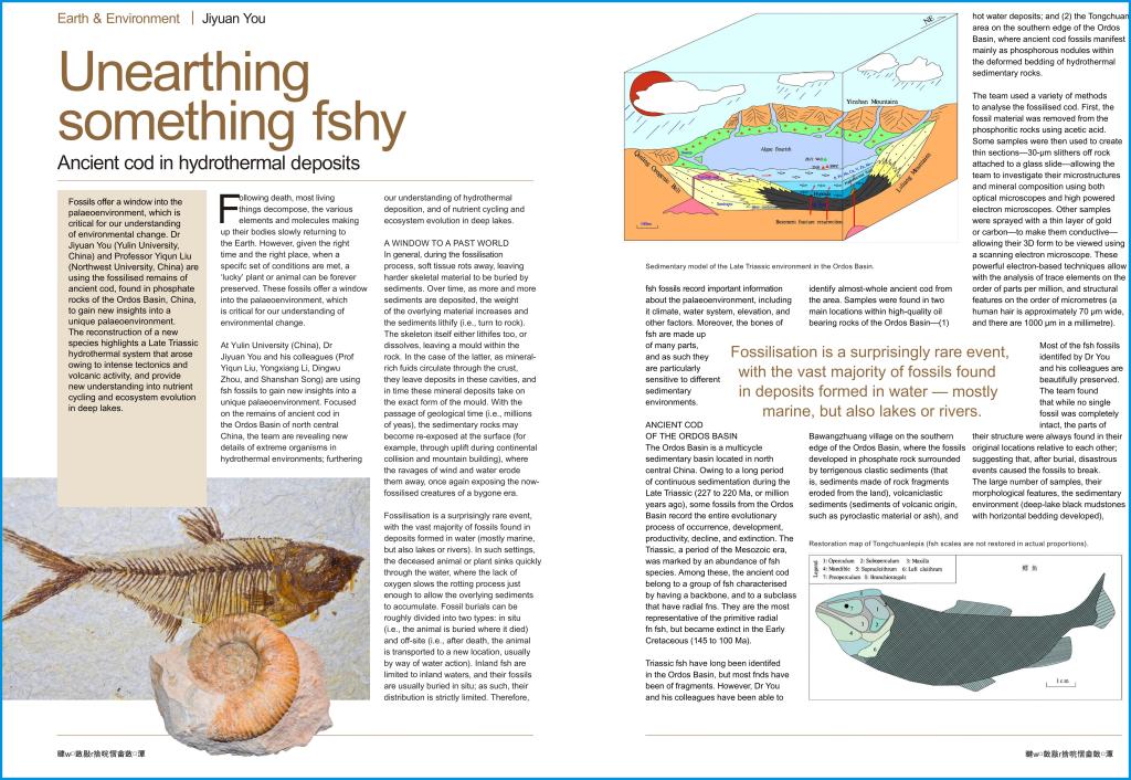 最近,英国著名科普杂志Research Features报道了我院尤继元博士团队在晚三叠世湖相鱼类进化的最新研究论文。该论文题目为《Discovery and significance of ancient cod fossils in hydrothermal fluid deposition areas: a case study of Chang 7-3 from the Triassic Yanchang Formation in the Ordos Basin》,以尤继元博士为第一作者,榆林学院为第一单位,在国际著名SCI期刊《Historical Biology》发表。