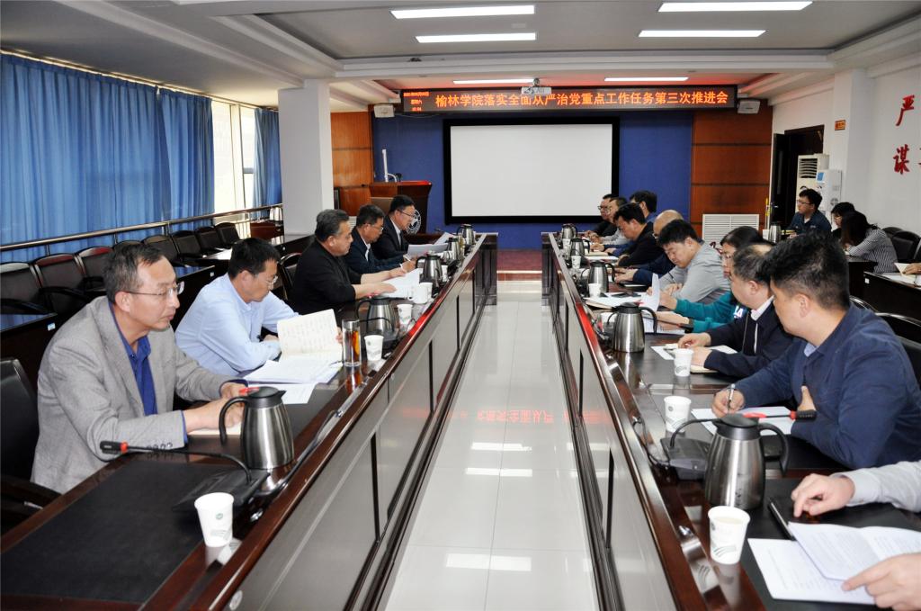 为进一步落实党委全面从严治党专题会议精神,检查4月任务完成情况,推动5、6月重点工作任务落实落地,5月8日下午,我校召开全面从严治党重点工作任务第三次推进会。党委副书记李治山主持,党委副书记、纪委书记姜劲波讲话,相关部门负责人参加。