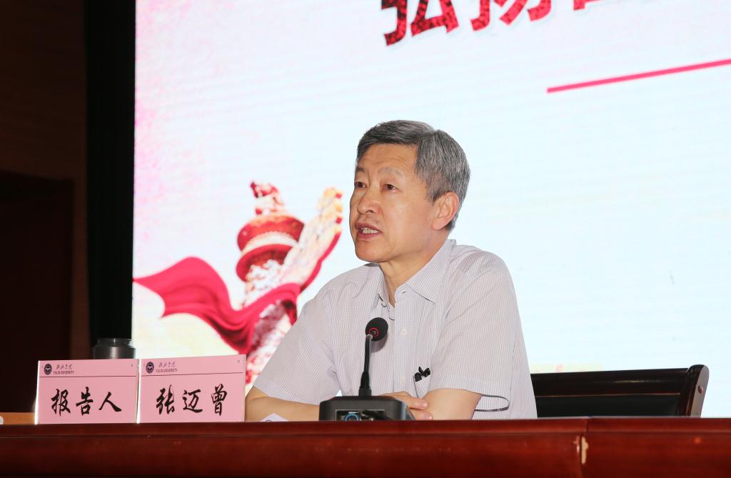 5月14日下午,西安交通大学原党委书记张迈曾应邀为我校600多名师生作主题为《弘扬西迁精神 建设大学思想文化》的党史学习教育专题报告。报告会在校图书馆学术报告厅举行,我校党委书记张新柱主持;校长许云华,党委副书记李治山,副校长张富林、张晓、康伟,党委副书记、纪委书记姜劲波参加。