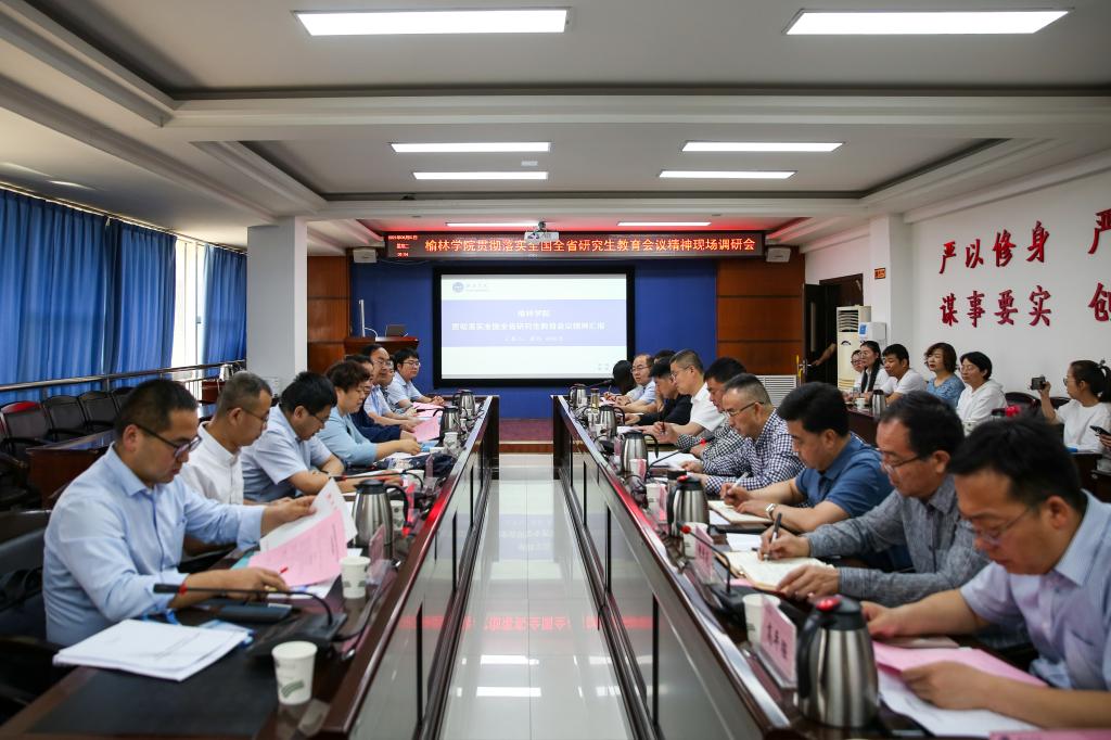汇报会后,专家组详细查阅了相关材料,与部分职能部门负责人、两个培养学院负责人以及研究生导师代表、研究生代表进行了深入座谈,随机听取了一门研究生课程,考察了我校陕北绒山羊工程技术研究中心、陕北旱区作物节水工程中心、陕西省低变质煤洁净利用重点实验室3个省级科研平台。