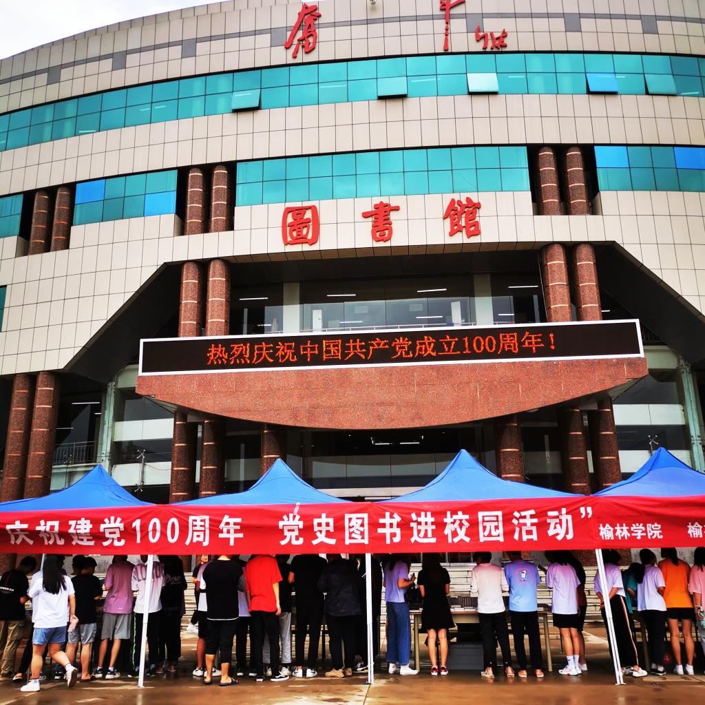 为庆祝中国共产党百年华诞,让党史进高校、进课堂、进学生头脑,6月7日,我校宣传部、图书馆携手榆林市新华书店在学校图书馆南广场举办“庆祝建党100周年 党史图书进校园”书展活动。