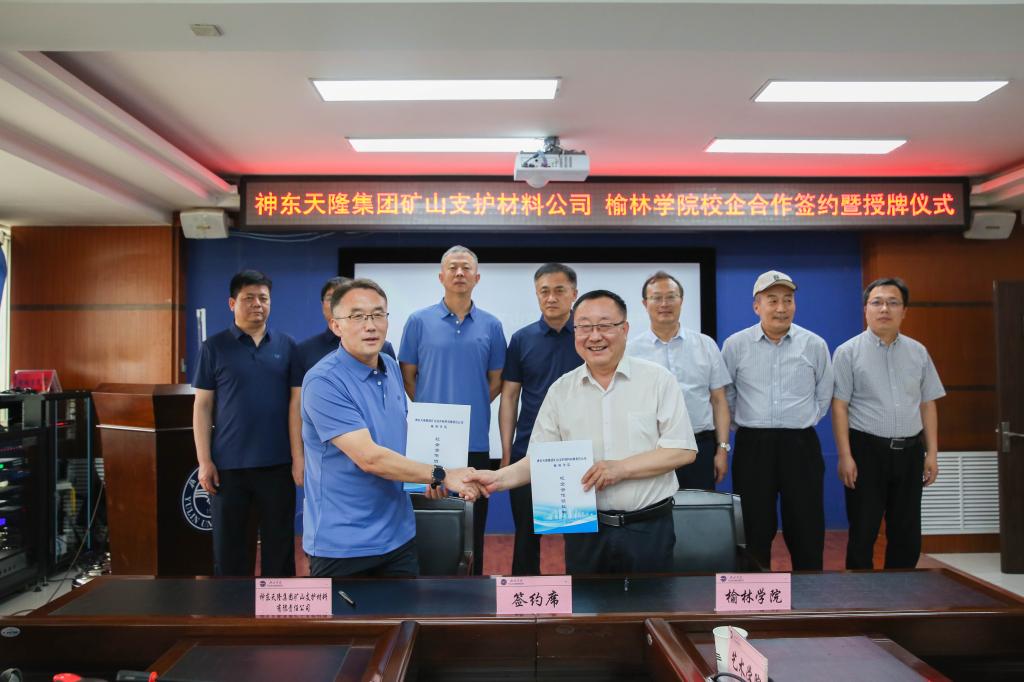 6月9日下午,神东天隆集团矿山支护材料有限责任公司与我校校企合作签约暨授牌仪式在行政楼四楼会议室举行。公司总经理、校友王炜,党总支书记任晓红,副总经理林宏智,总工程师薛继军,综合办公室主任党青,锚杆车间主任李占荣;我校副校长张晓出席。我校宣传部、教务处、科研处、继续教育学院、社会合作与校友工作处负责人,二级学院院长及社会合作与校友工作负责人、社会合作与校友工作处全体人员参加。