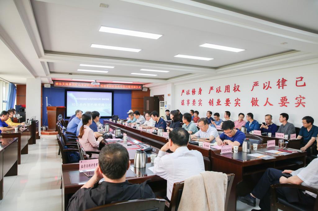 王炜表示,此次到访怀着对母校的深厚情谊,看到母校的发展倍感骄傲,见到母校的领导老师甚是亲切。他向大家介绍了神东天隆集团矿山支护材料有限责任公司的基本情况,表示公司在很多方面可以和母校展开合作。他希望通过本次签约,促进深层次交流,推进双方合作进度。