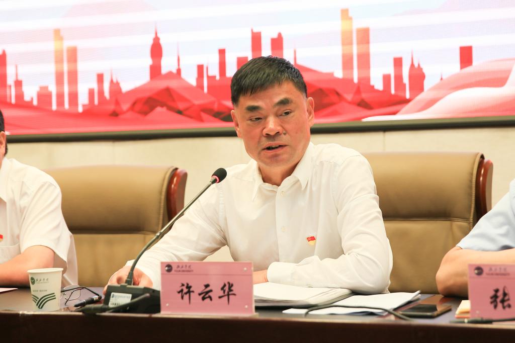 党委副书记、校长许云华在安排部署重点工作时指出,安全稳定事关重大,容不得出任何差错,要充分认识学校安全工作的极端重要性,坚持把安全工作摆在更加突出的位置上。严格落实“党政同责,齐抓共管,一岗双责,失责追责”的要求,强化责任落实,加强领导干部值班值守和应急处突。要及时发现风险、管控风险、化解风险,以高度重视、高度警惕、高度负责的态度把学校安全稳定工作的各项措施真正落到实处,做到守土有责、守土负责、守土尽责。他从坚持一个统领、守住一条底线、围绕一个定位、实现两大目标、促进一个主体、通过三个路径、凝练一个精神、抓住一个战略、落实一个抓手、延迟一个模式等十个方面对学校发展定位、人才引进、新校区建设等十项重点工作任务进行了安排部署。他指出要践行“三新”,促进 “三高”,最终实现“三感”,任重而道远,全校教职员工要对标对表,要艰苦奋斗、持续发力、精准发力、充分聚焦、背水一战,只能成功不能失败,以优异成绩迎接党的百年华诞。