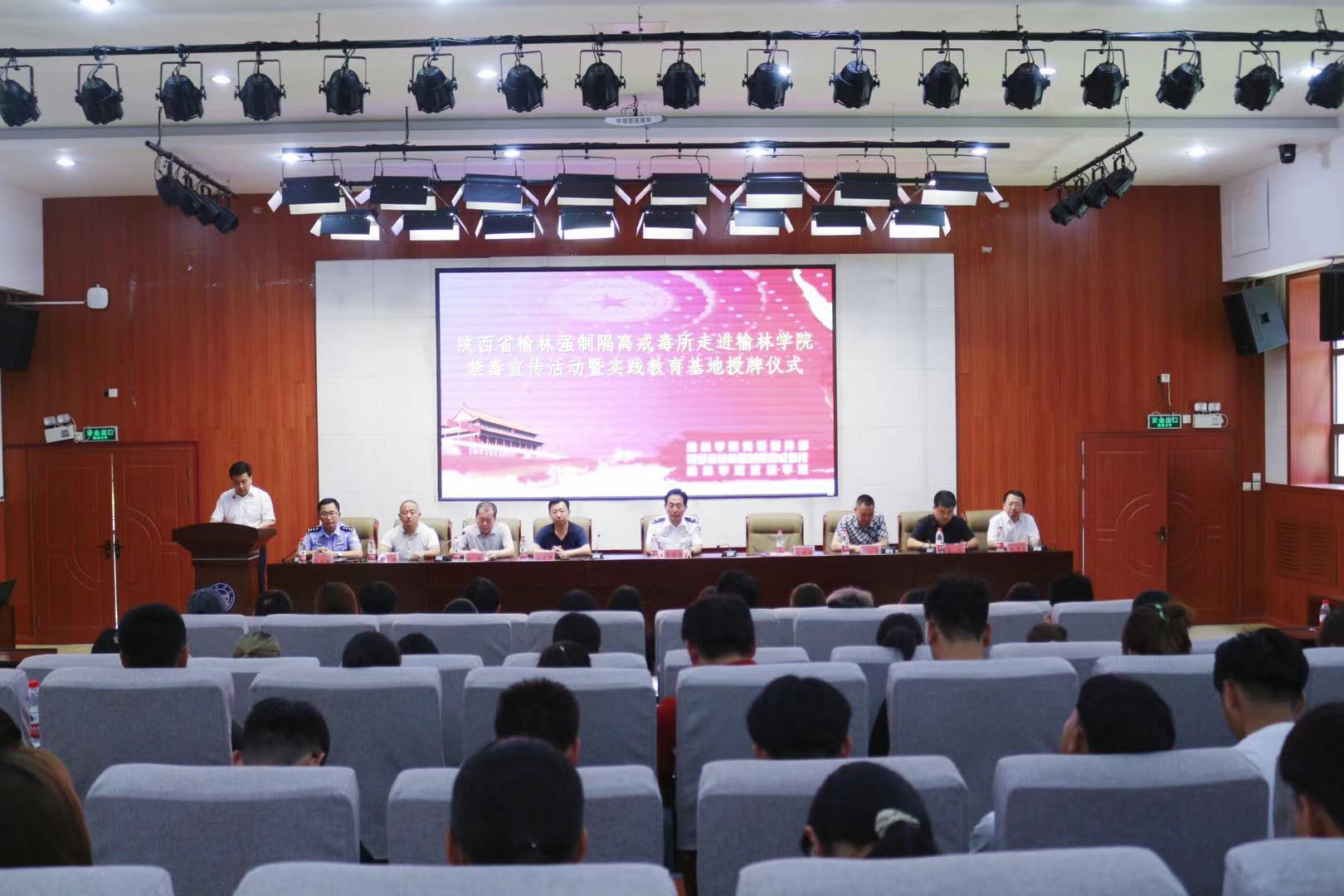为了深入贯彻落实习近平总书记关于禁毒工作“要坚持关口前移、预防为先,重点针对青少年群体”的重要指示精神,在第34个国际禁毒日来临之际,6月22日下午,陕西省榆林强制隔离戒毒所走进我校禁毒宣传暨实践教育基地授牌仪式在逸夫楼一楼报告厅举行。