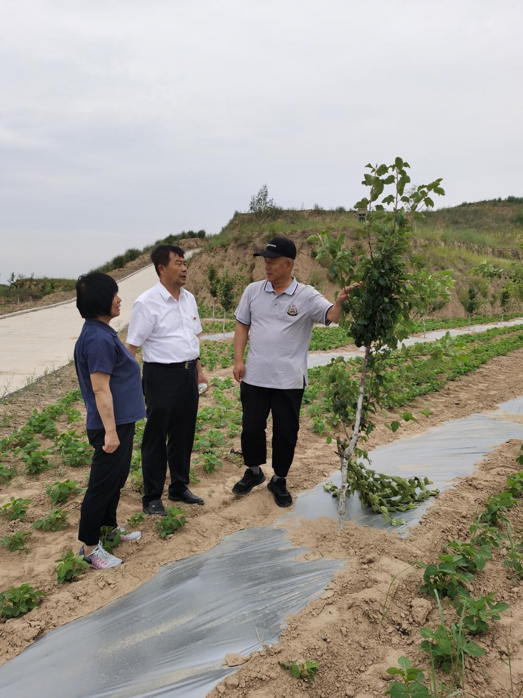 李治山一行还前往陕西果业公司绥德分公司种植基地---榆林学院苹果产学研一体化项目基地(绥德县薛家河镇雷家峁村)了解苹果产学研项目进展。