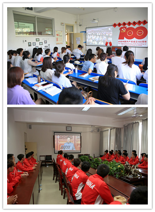 7月1日上午8时,庆祝中国共产党成立100周年大会在天安门广场隆重举行。中共中央总书记、国家主席、中央军委主席习近平出席大会并发表重要讲话。榆林学院广大师生通过电视、网络等多渠道收看庆祝大会盛况。校领导班子成员在行政四楼会议室收看庆典活动直播,各院系、各职能部门、各直属附属单位也组织师生员工在本单位收看,做到了全覆盖。