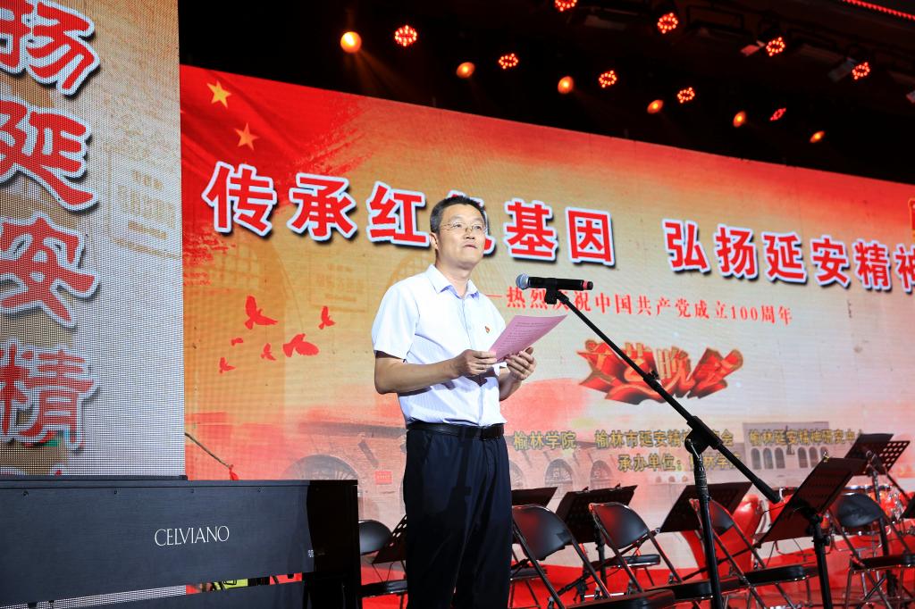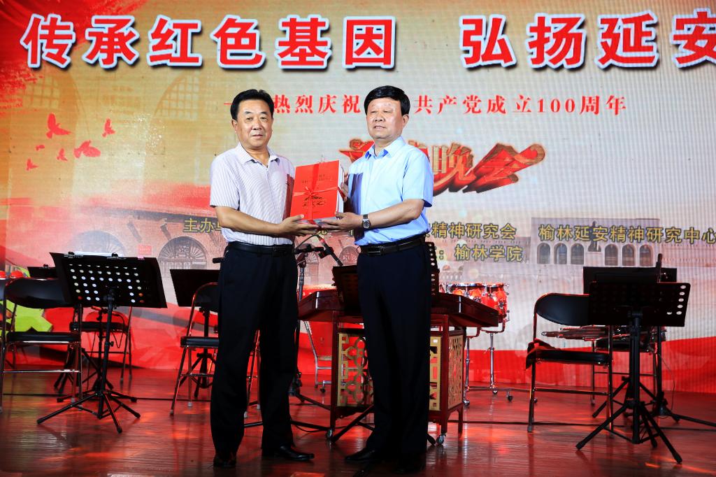 晚会开始之前,榆林延安精神研究会会长霍东平向榆林学院赠送了1000余册红色书籍,学院党委副书记尚爱军代表学校接受赠书;副校长康伟致辞并介绍了榆林学院在党史学习教育中的亮点工作和十四五发展规划。