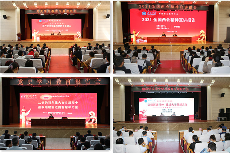 学校邀请了教育部社科中心主任王炳林,中国李大钊研究会会长、北京大学原党委书记朱善璐,榆林市委书记李春临,省委宣讲团成员、省社科院院长司晓宏,西安交通大学原党委书记张迈曾,省委教育工委、教育厅党史学习教育宣讲团成员、延安大学郝琦,西北政法大学马克思主义教育研究院院长、二级教授刘进田,省委宣讲团成员、延安大学副校长谭虎娃,榆林市委宣讲团成员、市直工委书记苏国强等多名领导专家来校做了数十场高质量的宣讲报告。邀请“全国诚信之星”“中国好人”“三秦楷模”路生梅讲专题党课。邀请习近平总书记来陕考察重要讲话重要指示精神省委宣讲团进校宣讲,全校137名处级干部实现培训全覆盖。