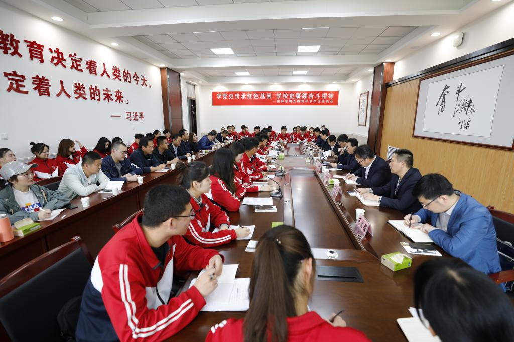 党史是明灯,也是号角。学校各级领导干部带头学,主动学,把党史学习教育同总结经验、观照现实、推动工作结合起来,以读史、观史、颂史、践行等浸润型的方式奏响全员“大合唱”。校级领导班子成员重点围绕党的初心使命、党的光荣传统和优良作风、党的教育方针、构建高质量教育体系等主题开展交流研讨。广大党员干部师生重点围绕知史爱党、以史明志、明史崇德、学史奋进四个专题进行交流研讨。各级领导带头讲党课,带头宣讲,带头撰写学习心得体会,深入联系学院、所在党支部参加学习。党委书记、党史学习教育领导小组组长张新柱,切实履行第一责任人职责,作了“跟着习近平总书记学党史”的专题报告,线上线下14000余名师生收听收看了报告会,为学生党员代表作《学习贯彻六中全会精神,培养堪当大任的红色传人》专题报告。各级党组织书记按照党史学习教育三个阶段的任务和要求,认真组织实施,确保党史学习教育向基层延伸,向纵深推进。
