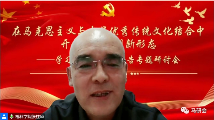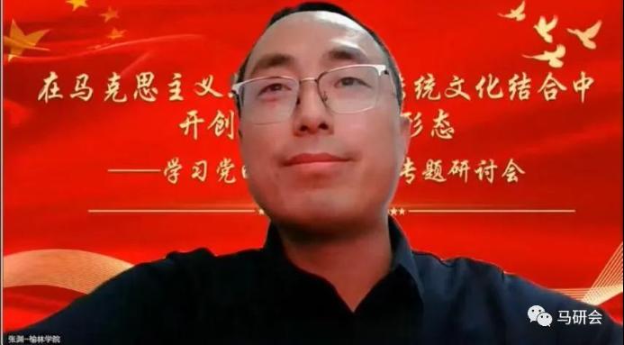 当天下午,在中青年学者发言结束后,线上会场举行了简短而隆重的闭幕式。闭幕式由榆林学院马克思主义学院副院长张渊主持。张渊代表榆林学院马克思主义学院感谢办会各方的共同努力和密切配合,指出本次会议紧扣“在马克思主义与中华优秀传统文化结合中开创人类文明新形态”的理论主题,对贯彻落实党的二十大精神,推动新时代马克思主义研究具有重要意义。
