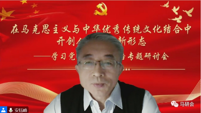 主旨发言环节由北京大学马克思主义学院副院长、马研会副理事长兼秘书长宋朝龙主持,中国社会科学院哲学研究所党委书记、中国社会科学院大学哲学院院长王立胜,复旦大学哲学学院、马克思主义学院“双聘”特聘教授、全国当代国外马克思主义研究会名誉会长、中国人学学会副会长陈学明,四川大学国际儒学研究院院长、古籍整理研究所所长、国际儒学联合会副会长舒大刚,清华大学马克思主义学院特聘教授、中国马克思恩格斯研究会常务副会长杨金海,中国社会科学院历史研究所所长、中国秦汉史研究会会长卜宪群,中山大学文化研究所所长、哲学系教授李宗桂,中共中央党校科学社会主义教研部副主任、中国科学社会主义学会副会长兼秘书长郭强,华东师范大学哲学系教授、尼山世界儒学中心学术委员会副主任陈卫平,中国政法大学党规研究中心主任、马研会常务理事柯华庆,榆林学院马克思主义学院副教授薛俊武出席并进行主旨发言。