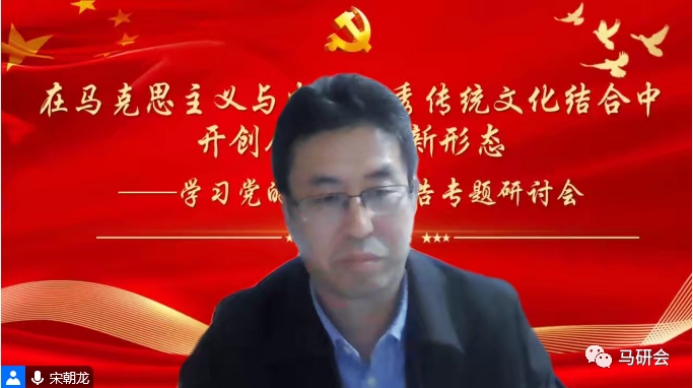 宋朝龙代表主办方进行总结发言,指出本次研讨会具有鲜明的马克思主义特色,聚集了来自全国各地的马克思主义学者、传统文化学者,对学习、研究党的二十大精神具有非常重要的意义。并强调社会主义制度和中华优秀传统文化的结合有着独特的优越性,社会主义可从根本上解决资本积累产生的问题,而中华优秀传统文化所倡导的美美与共、天下大同,与人类命运共同体理念不谋而合,对推动国家发展和人类文明进步意义重大。