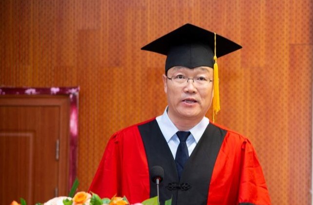 校长许云华发表了热情洋溢的致辞,向经过努力学习圆满完成学业的同学们表示祝贺。他回顾了学校“百年芳华、英才辈出”的红色基因,向即将奔向远方的66名硕士毕业生提出了“坚定文化自信,勇作双新使者”的期望,做一个新文化、新文明的继承者、创新者和传播者。他希望同学们始终保持青春奋斗的姿态,秉持自信自强的信念,顺境时乘胜追击,逆境时砥砺前行,展现榆苑学子的独特风采。最后,他指出母校永远是大家坚强的后盾、心灵的港湾,无论身在何处,欢迎大家常回家看看!