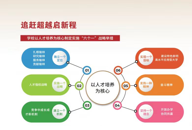 榆林学院肇建于1923年,初名陕⻄省立第四师范学校。老校⻓李子洲在此创建陕北最早党团组织,点燃陕北革命星星之火,成为“⻄北革命策源地”。毛主席曾亲笔为绥师同学题词“奋斗”。2003年经教育部批准升格为本科院校;2018年,被陕⻄省确定为一流应用型本科院校建设单位,被教育部确定为硕士学位授权。学校恪守“读书勿忘救国、救国勿忘读书”校训,践行“奋斗”精神,为党育人、为国育才,俊彦辈出,彪炳史册。3位校友成为国家级领导,60多位校友成为新中国党政军高级干部,8位校友担任过中共陕西省委书记,70多位校友为中国革命英勇献身,为西北革命根据地的创建与发展做出了特殊而重大的贡献。
