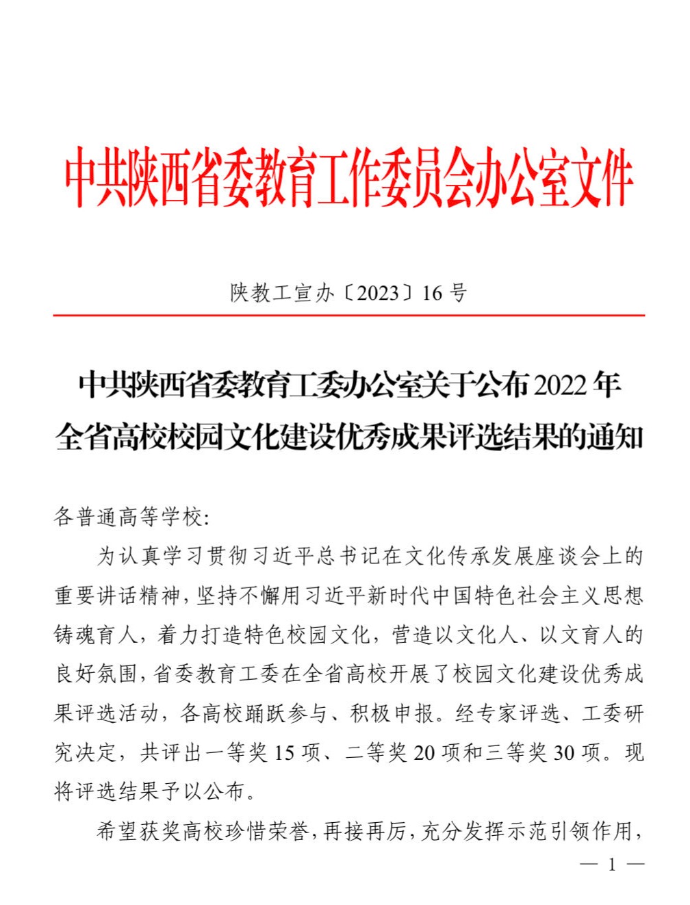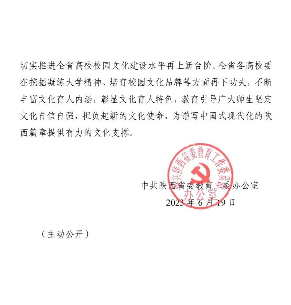 6月21日,由中共陕西省委教育工委评选的2022年全省高校校园文化建设优秀成果获奖名单揭晓(陕教工宣办〔2023〕16号),榆林学院申报的《传承红色基因 赓续奋斗精神——榆林学院融入师生血脉的大学精神》荣获一等奖。这是榆林学院继2021年荣获全省高校校园文化建设优秀成果一等奖后,再次荣获全省高校校园文化建设优秀成果最高奖。本次全省高校校园文化建设优秀成果奖(每个高校限报1项)分别表彰一等奖15项、二等奖20项、三等奖30项。