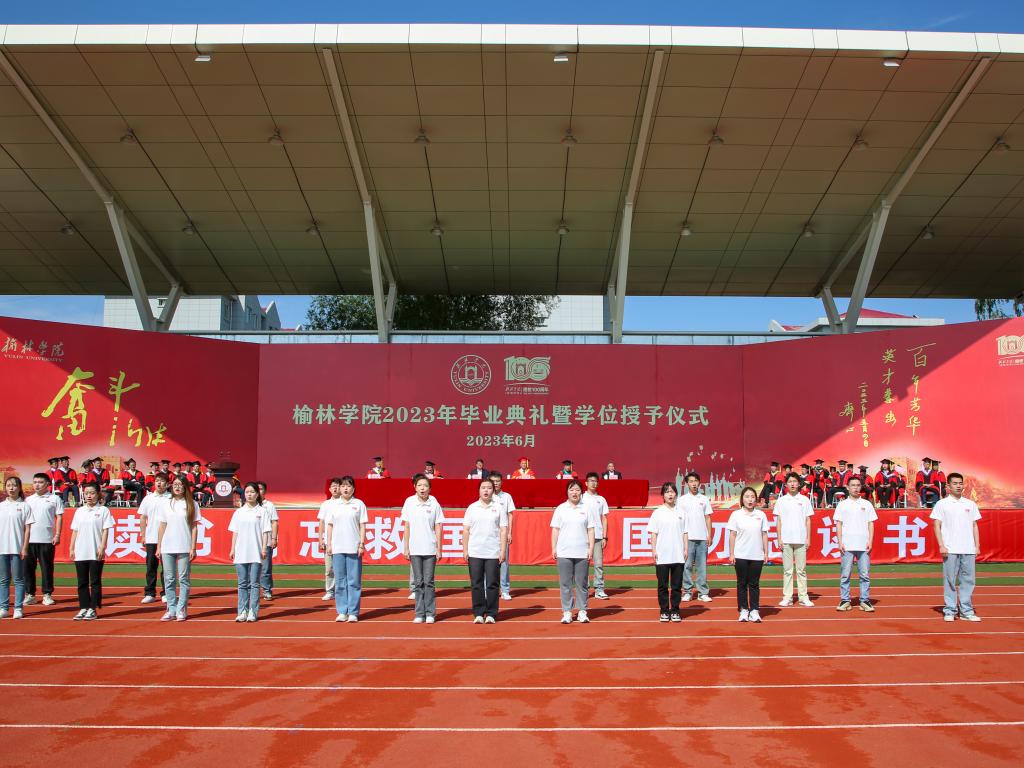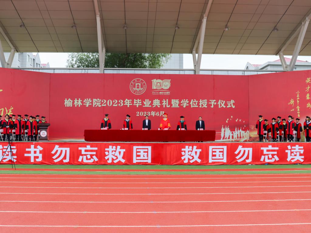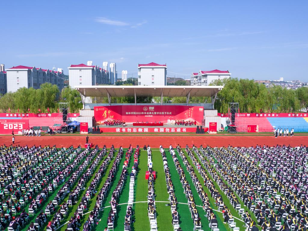 6月26日上午,云销雨霁,彩彻区明,榆林学院2023年本科生毕业典礼暨学位授予仪式在校田径场隆重举行。