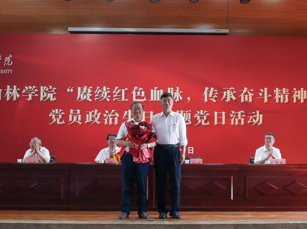 党委书记张新柱出席并为50年党龄老党员代表颁发“光荣在党50年”纪念章;党委副书记、校长许云华为“最美榆苑人”贺智利教授颁奖;副校长张晓、康伟,党委副书记、纪委书记姜劲波为师生党员代表赠送政治生日贺卡;活动由党委副书记尚爱军主持。