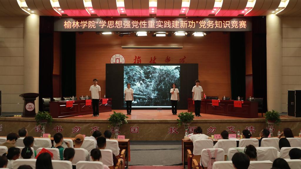 为了庆祝中国共产党成立102周年,为深入学习贯彻习近平新时代中国特色社会主义思想,进一步用党的创新理论统一思想、统一意志、统一行动,6月29日晚上,由党委组织部、党委宣传部主办,文学院党总支承办的榆林学院“学思想 强党性 重实践 建新功”党务知识竞赛决赛在图书馆二楼学术报告厅举行。学校党委书记张新柱,党委副书记尚爱军,党委副书记、纪委书记姜劲波出席并颁奖,机关党委、宣传部、人事处、学生处、高水平大学建设办公室等负责人及500多名师生参加。