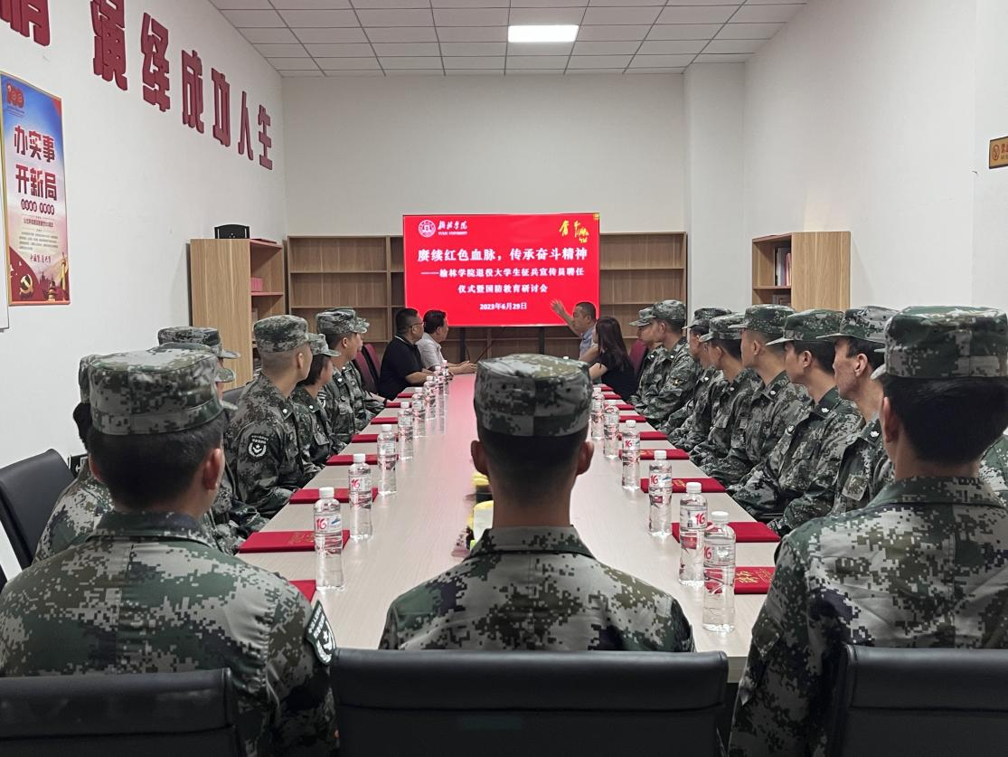 为扎实开展学习贯彻习近平新时代中国特色社会主义思想主题教育,把学习成果转化为坚定理想信念、锤炼党性、指导实践和推动工作的强大动力,以主题教育赋能国防教育,将主题教育融入立德树人根本任务,激发学生爱国、爱校热情,培养担当民族复兴大任的时代新人。6月29日下午,在“七一”建党节来临之际,学校召开“赓续红色血脉 传承奋斗精神”榆林学院退役大学生征兵宣传员聘任仪式暨国防教育研讨会。党委副书记尚爱军出席并讲话,武装部、组织部、学工部负责人、学校退役军人协会30余人参加。