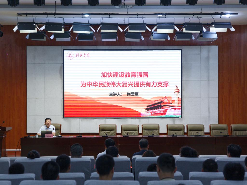 张新柱从“聚焦‘两个维护’强化政治建设”“坚持不懈用习近平新时代中国特色社会主义思想凝心铸魂”等八个方面汇报了我校干部作风能力提升整体推进情况。他表示,自干部作风能力提升年活动开展以来,在省委第九巡回指导组的指导下,学校党委认真学习贯彻习近平新时代中国特色社会主义思想,把主题教育与干部作风能力提升年活动有机融合、一体推进,创新活动载体,上下联动、狠抓落实,师德师风教风学风明显好转,使全校干部的“三个能力”(教书育人能力、服务地方能力、办学治校能力)得到明显增强。广大干部弘扬学校“奋斗”精神,改革创新、艰苦创业,以高水平作风能力建设推动学校高质量发展。下一步,学校将着眼作风建设,坚持三晒三看、着眼能力提升,抓实具体举措、着眼激发内力,强化考核激励,持续聚焦干部作风能力提升年五项工作目标和八项重点任务,不断转作风、强校风、促发展。