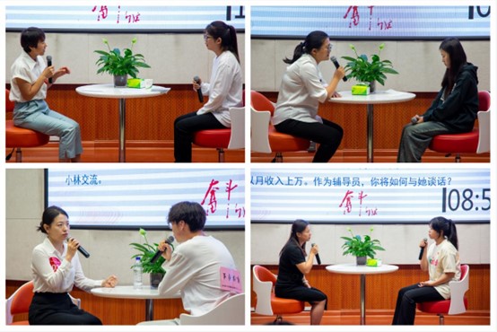 决赛设置谈心谈话环节,主要考察辅导员对学生特征、学生成长成才规律的了解把握程度,对学生的教育引导能力、解决理论困惑和实际问题的能力。各位参赛选手围绕题目与助演学生以情景再现的方式开展谈心谈话,选手们冷静思考、用心交流、巧妙应对、合理解答,每一个细节都折射出辅导员对学生的关心关爱和对学生成长成才规律的深刻理解,充分展现了我校辅导员扎实的素质能力和良好的精神风貌。