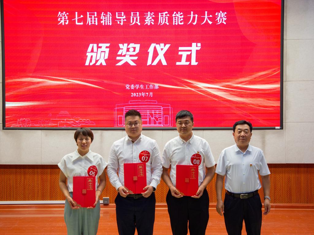 比赛现场环环相扣、气氛紧张热烈。参赛选手过硬的素质能力和出色的现场表现赢得了在场领导、评委和辅导员们的一致好评。最终,综合初赛和决赛成绩,化学与化工学院吕波、政法学院章赵晖获一等奖。数学与统计学院刘浪、管理学院李轩宇、化学与化工学院徐绘获二等奖。艺术学院刘媛媛、信息工程学院祁琦、体育学院赵立爱、生命科学学院封少博、政法学院任潘文荣获三等奖。