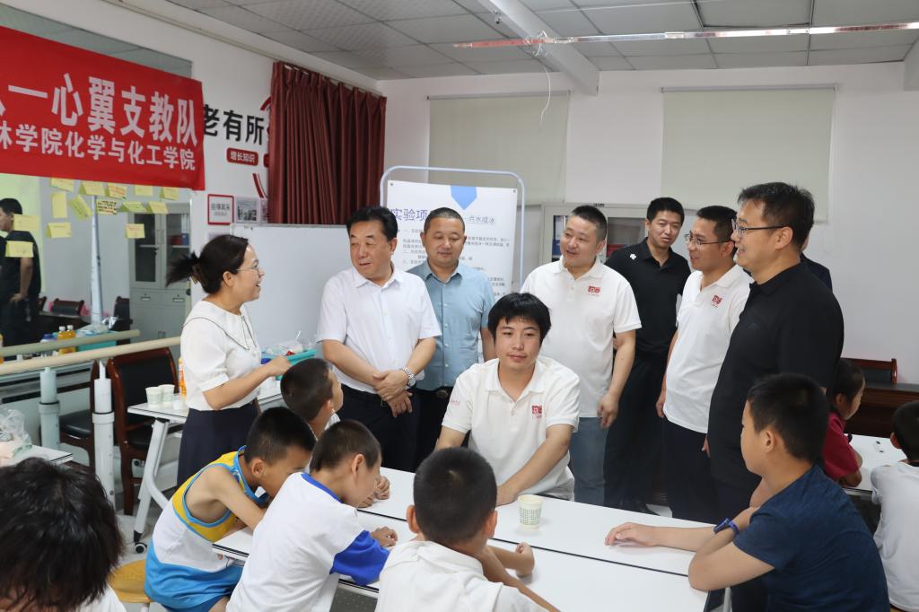 在龙洋社区,尚爱军详细了解社会实践队师生学习、生活、工作情况,并深入课堂观摩了支教队员上课情景,对支教队员所具有的责任意识、担当意识、服务意识给予肯定。同时叮嘱支教队全体队员要守牢安全底线,劳逸结合,以良好的精神状态投入到工作中。