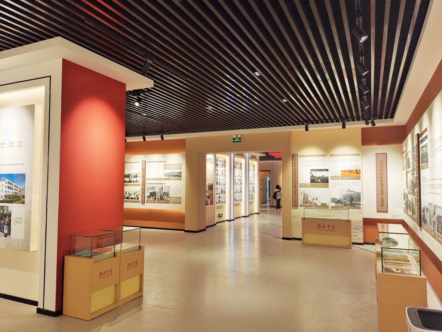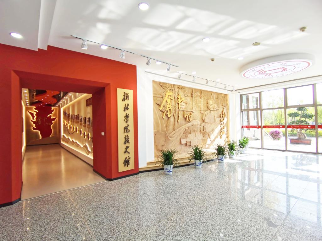 榆林学院校史馆是在1998年绥德校区校史馆和2018年榆阳校区校史展览馆的基础上全新整合扩建而成,展陈总面积达600平方米。包括序厅、主展厅、尾厅三部分,展现红色根脉、接续奋斗、转型发展、激情追梦四个篇章的内容,以丰富的图片、文字、实物等资料为主要展陈内容,同时借助辅助沙盘、场景还原、多媒体等系统真实地讲述了学校百年办学历史、发展脉络,同时展示了学校在不同历史时期所取得的主要成果与所做出的重要贡献。