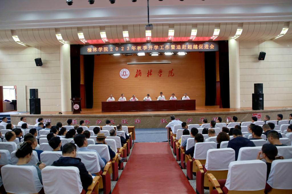 8月27日下午,我校在图书馆报告厅召开2023年秋季开学工作暨追赶超越促进会,全体校领导、全校处科级干部、各二级学院教研室主任、榆溪学者、三级教授近300人参加会议。