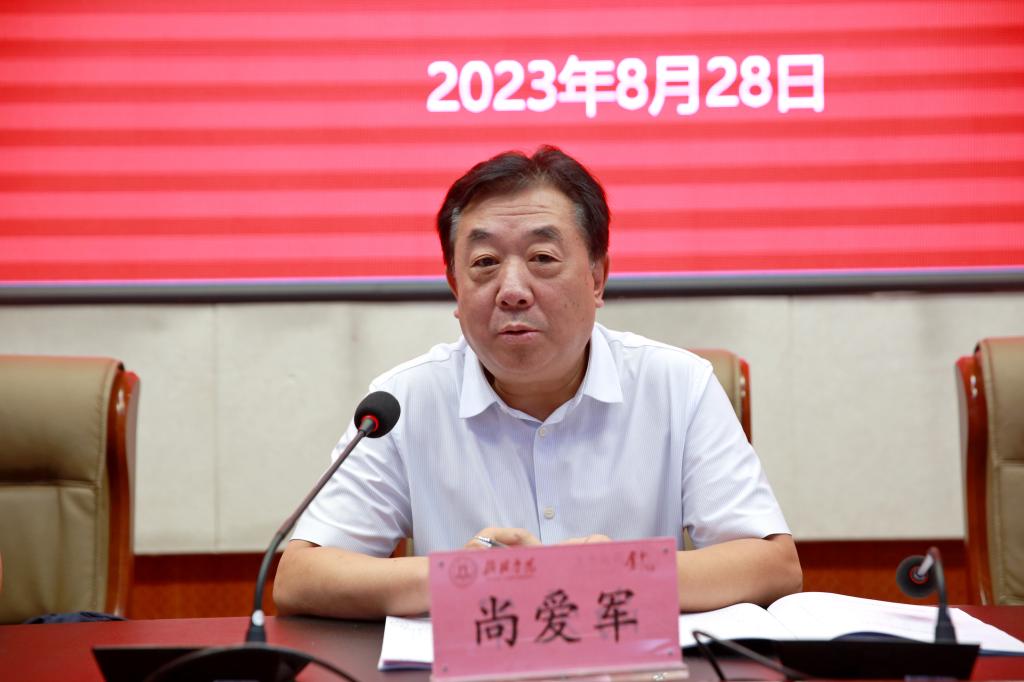 8月28日上午,我校在逸夫楼一楼报告厅召开2022级学生军训动员暨教官见面会,党委副书记尚爱军出席,武装部、宣传部、教务处、后勤管理处、保卫处、团委负责人,各学院党总支书记、副书记、2022级全体辅导员班主任,2022级学生代表、全体军训教官参加大会。会议由武装部部长主持。