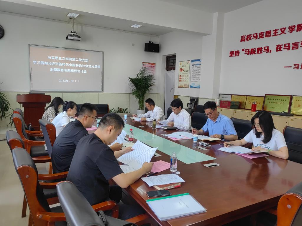 9月11日下午,马克思主义学院教工第二党支部在6号教学楼6406会议室召开学习贯彻习近平新时代中国特色社会主义思想主题教育专题组织生活会,党委书记张新柱以普通党员身份参加,马克思主义学院党总支书记、副书记列席会议,专题组织生活会由马克思主义学院教工第二党支部书记李飒飒主持。