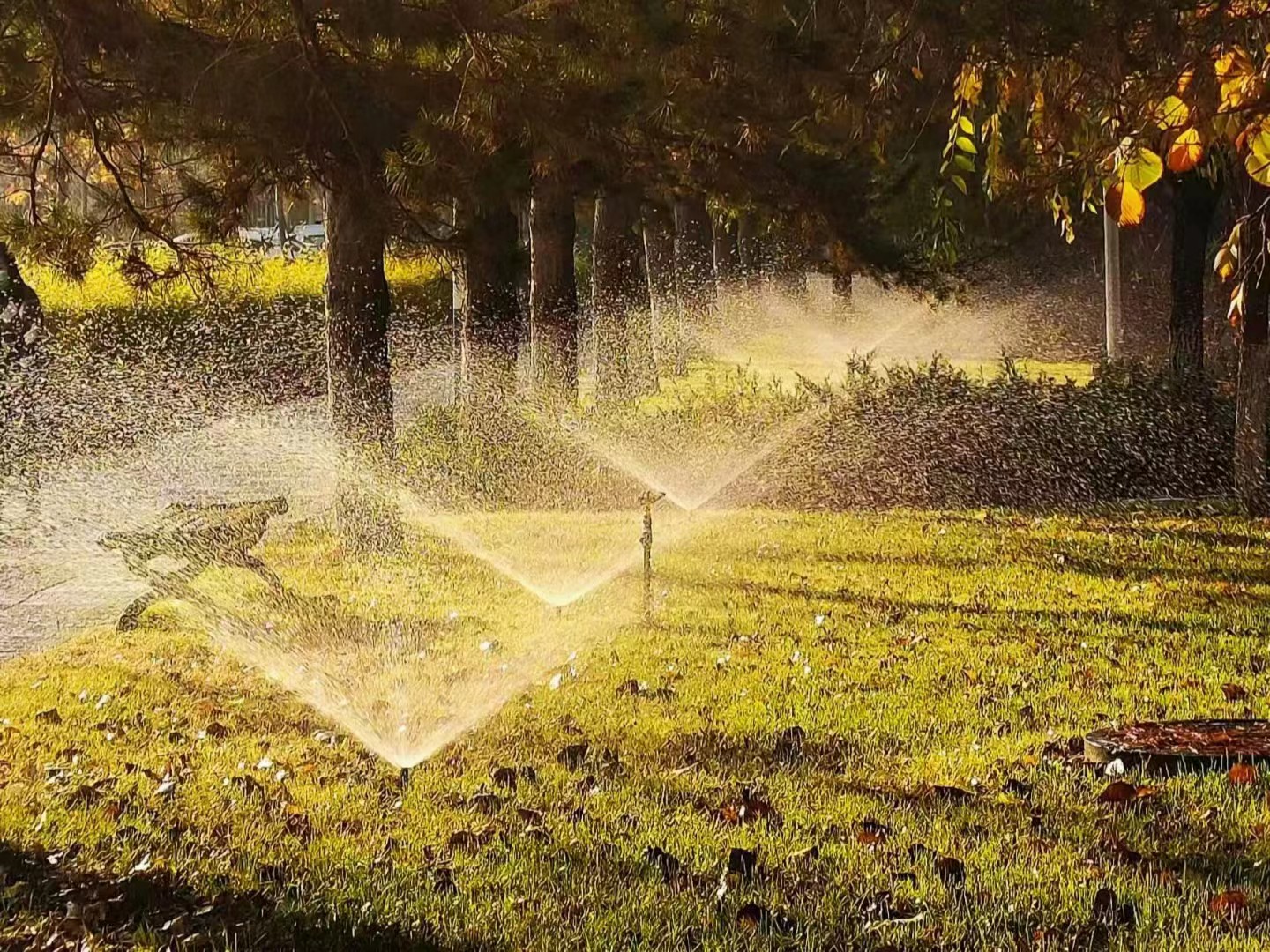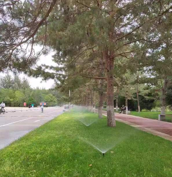 2022年3月,我校通过榆林市水资源中心向省水利厅争取到节水建设专项资金120万元,用于我校校园绿化灌溉节水系统一期改造。校园绿化浇灌水源来自尤家岇水库,通过暗管引入校内3个蓄水池,再通过水泵加压后输送到绿地浇灌。项目已经于2023年6月施工完成,一期改造项目共60.1亩,主要施工项目为:在沁园安装水源泵站及首部工程1处,主要采取喷灌、微喷带2种灌溉方式进行浇灌。对沁园、艺术楼、图书馆后、2#教学楼、3#教学楼、4#教学楼、5#教学楼后共12块绿地铺设地埋管道8.046Km,安装地埋式喷头952套,改造后的区域实现了手机远程操控浇灌,大大的节省了人力成本,保证浇水均匀,较改造前节约用水66%以上,节水效果明显。