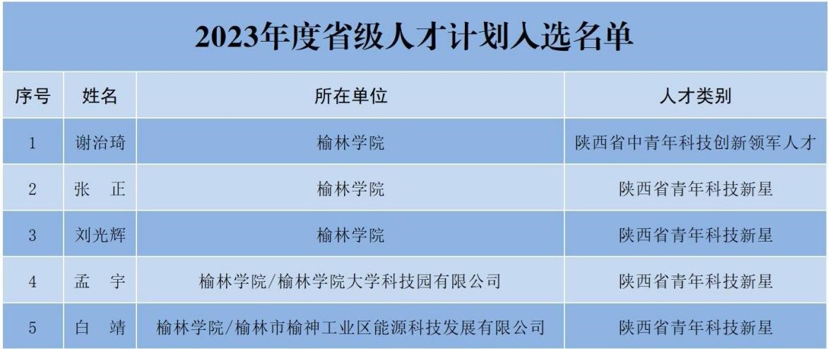 日前,陕西省科技厅发布《关于公布2023年度中青年科技创新领军人才、科技创新创业人才及2024年度青年科技新星拟入选名单的通知》,我校数学与统计学院谢治琦博士入选陕西省中青年科技创新领军人才,生命科学学院张正博士、化学与化工学院刘光辉博士、白靖博士和孟宇博士入选陕西省青年科技新星。