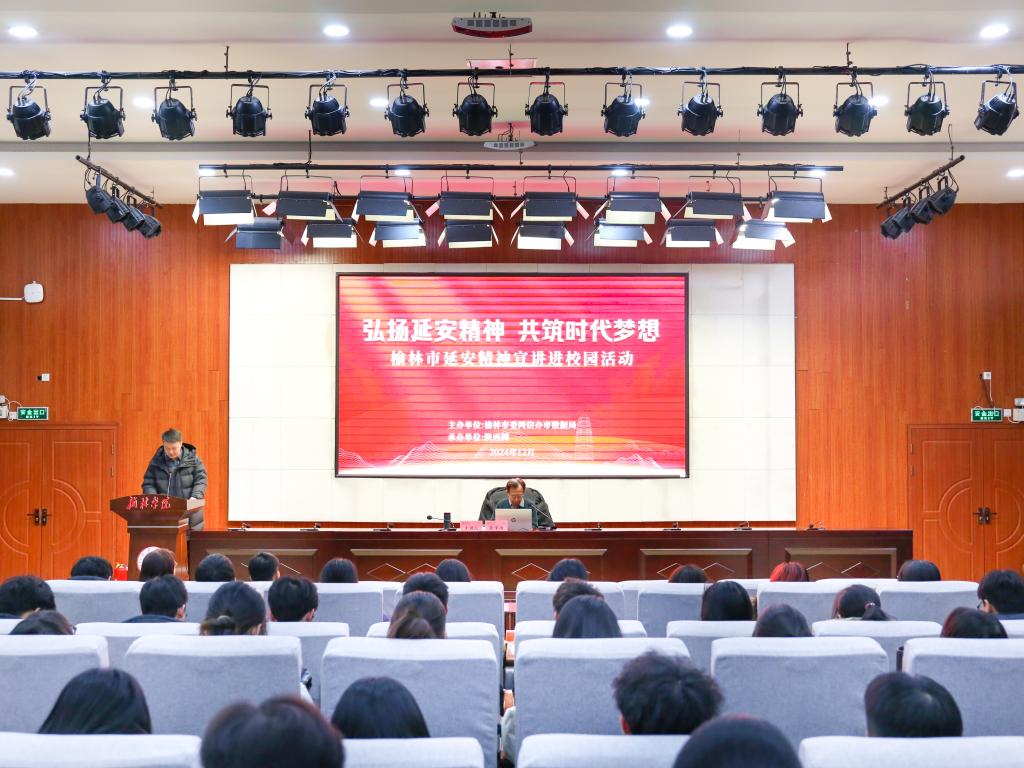 为深入贯彻落实习近平总书记关于弘扬延安精神的重要指示精神,积极推进延安精神进校园,充分发挥高校文化育人、思想育人、精神育人引领作用,12月11日晚上,我校特邀中共延安市委党史研究室教授、中国延安干部学院兼职教授张学尚在逸夫楼一楼报告厅为师生作题为《延安精神及其时代价值》的讲座。本次讲座由榆林市委网信办主办,陕西网和校党委宣传部承办,学工部、团委以及各二级学院学生组织代表200余人参加。