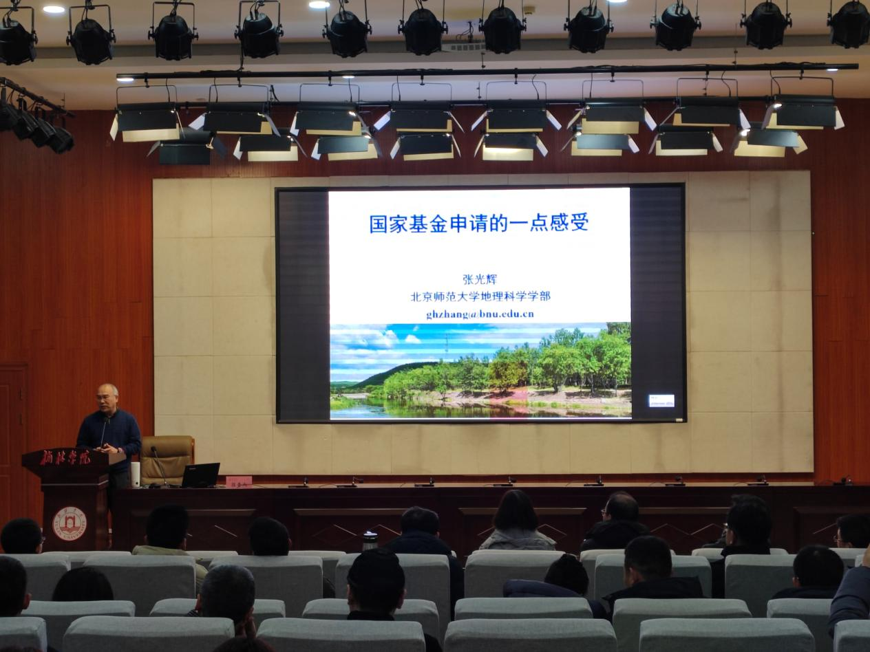 随后,陈斌教授、张光辉教授分别以“国家自然科学基金申请书撰写技巧”“国家基金申请的一点感受”为题,解读了国家自然科学基金申报的最新规定,阐述了申报书的总体构架。两位教授从基金项目的选题、关键词选取、立项依据、关键科学问题等方面做了细致的分析。并结合经验和范例详述了申报书各部分之间的关系、撰写技巧及写作逻辑。两位教授同时针对地区基金、青年基金、面上基金、区域联合基金等项目的申报也给出了诸多指导性建议。会上,两位教授与参会人员就申报准备过程中的主要问题进行了答疑和交流。