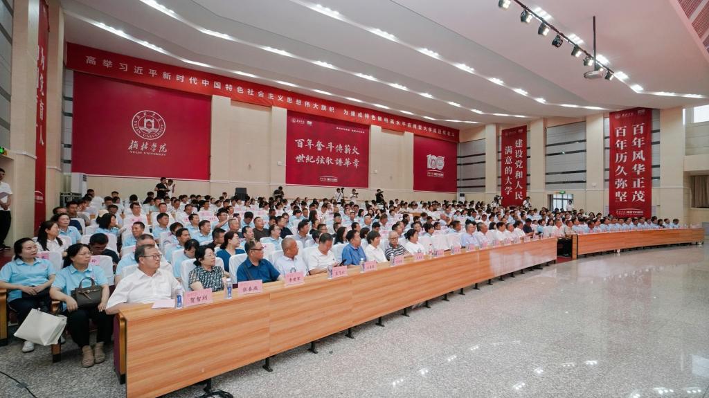 纪念大会在庄重嘹亮的国歌声中拉开帷幕。康伟作了情深意切、振奋人心的致辞。他首先回顾了学校过去的辉煌历史。从陕西省立第四师范学校的成立,到十里铺的西安师范学院绥德分院、榆林师范专科学校、榆林高等专科学校,再到榆林学院,一脉相承的绥德师范学校和榆林学院,始终牢记“为党育人、为国育才”使命,恪守“读书勿忘救国,救国勿忘读书”校训,先后培养了10万余名榆苑人才,携手阔步走进新时代。康伟从学科建设更具牵引力、科学研究更具创新力、人才培养更具影响力、师资队伍更具竞争力、办学条件更具吸引力五大方面介绍了学校当前的发展成就。他强调,建设特色鲜明的一流应用型大学是全校师生和广大校友的美好愿望,更是党和国家赋予我们的时代重托。学校将深入践行“国之大者”的使命自觉,把握时代脉搏,锚定奋斗目标,坚定战略自信,矢志团结奋斗,努力谱写一流应用型大学建设新篇章。