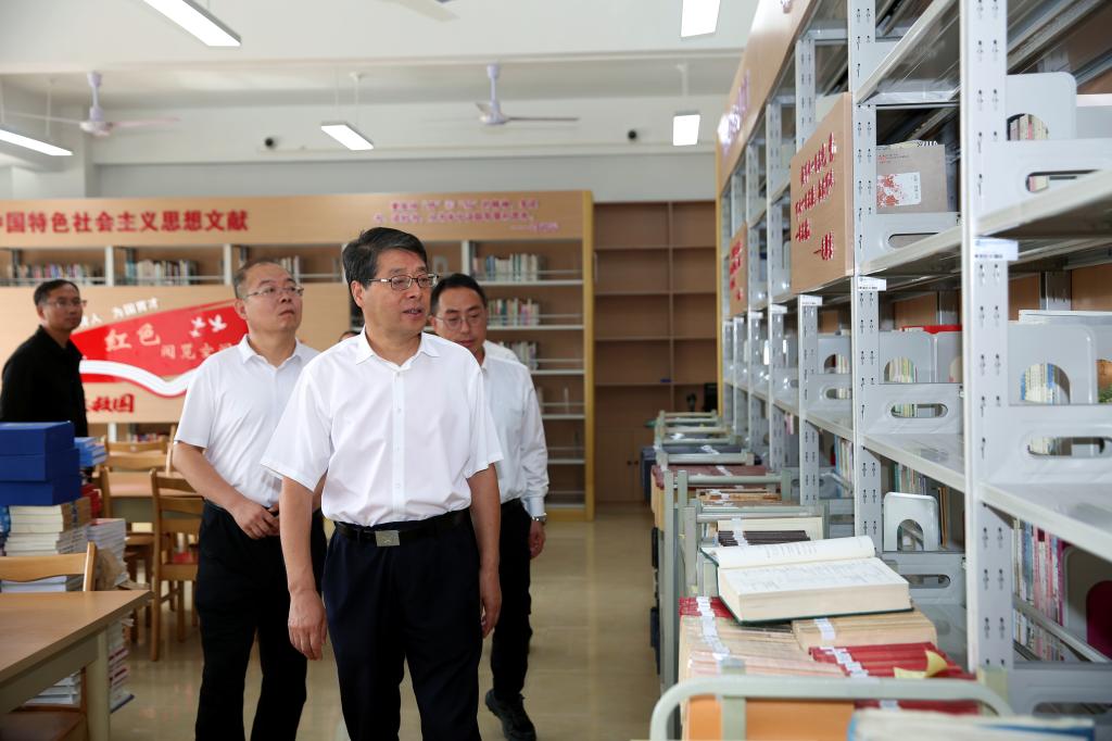 9月3日上午,榆林学院图书馆红色文献馆建成开馆,校党委书记张新柱来到图书馆调研文献搜集、整理和分布情况,并要求后期与党史党建学院和五乐育人学院深度合作,打造红色品牌,赓续红色基因,培育红色传人。党委副书记闫龙陪同调研。