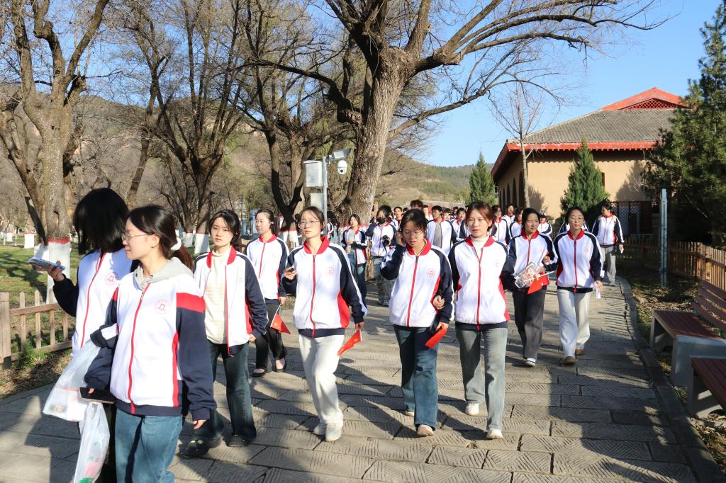 16日上午,师生徒步登上宝塔山。作为延安精神的象征,宝塔见证了中国共产党从抗日战争到解放战争的奋斗历程。登顶远眺,师生在历史与现实的交融中,感受“坚定信念、团结奋进”的精神力量。