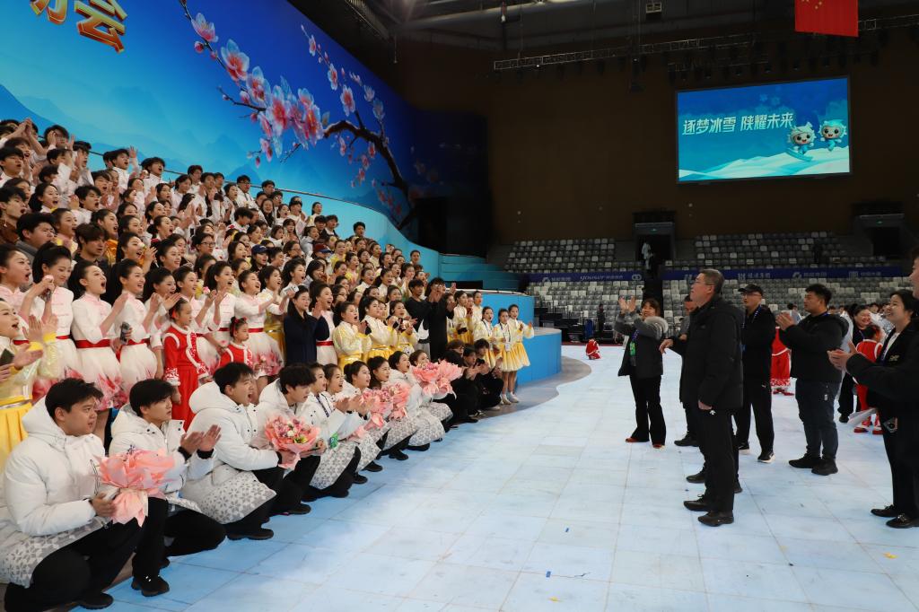为保障陕西省第一届冬运会开闭幕式演出顺利进行,从2025年12月425名开闭幕式演出人员分为9个小组,开始为期70天的集中排练,364名志愿者按照要求开展多次集中培训,内容涵盖志愿精神、赛会概况、竞赛规则、岗位技能与行为规范。培训期间,学校严格执行考勤制度,落实全程打卡、专人督导,确保全员参与、学有实效。针对火炬传递、礼仪服务等专项任务,学校相关部门全力保障演出学生和志愿者寒假留校期间的饮食供应、暖气供应、水电保障、医疗服务、车辆调度与校园安全管理,以全方位、精细化的保障,为榆苑学子投身冬运会工作扫清后顾之忧、筑牢坚实后盾。