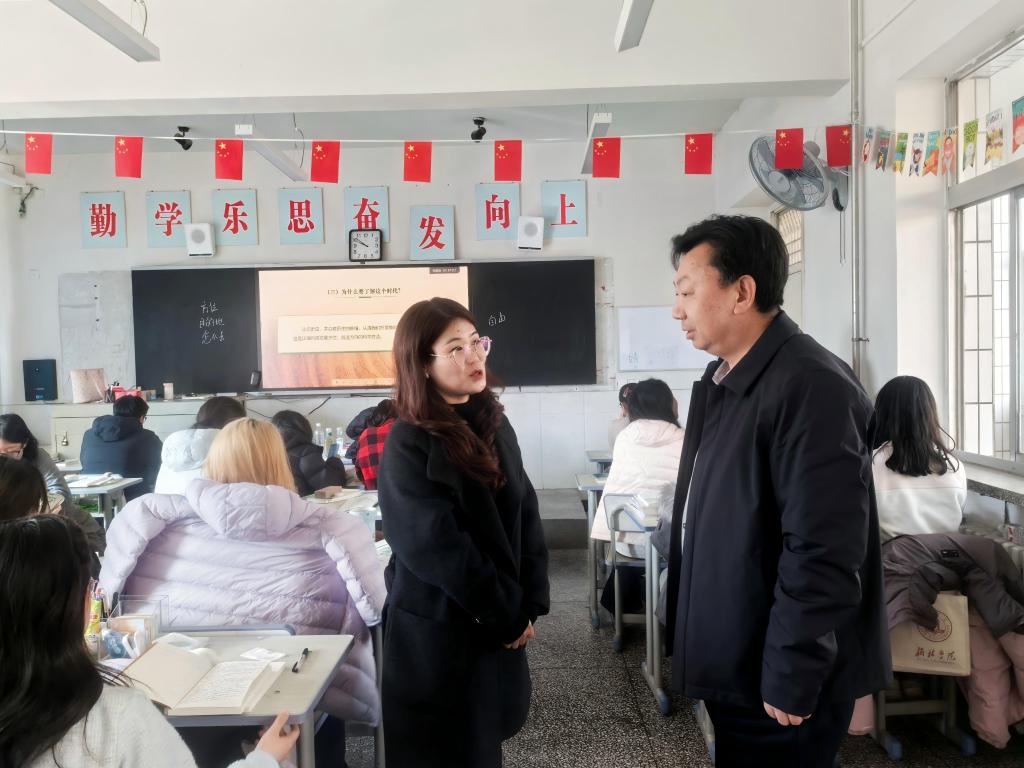 康伟在绥德师范校区,走进马素芳老师的《形势与政策》课堂,认真聆听教师讲解,仔细观察学生学习状态,不时作听课记录。听课结束后,康伟与师生亲切交流,对教师的讲授给予充分肯定。在交流中,他要求,一是学校更名大学成功具有里程碑意义,为发展搭建了全新平台。要以此为契机,着力引导广大教师提升教学能力,全面提升学校教育教学质量。二是持续深化课堂教学改革,以实施人工智能赋能教育教学为抓手,重塑课堂生态。教师要“少讲精讲”,突出核心引导;学生要“多练多实践”,强化知行合一,让科技赋能与教学相长在课堂中形成合力。三是青年学生要大力弘扬学校“奋斗”精神,倍加珍惜大学带来的新机遇、新平台,做到勤学善思、奋发有为,不断锤炼本领、增长才干。