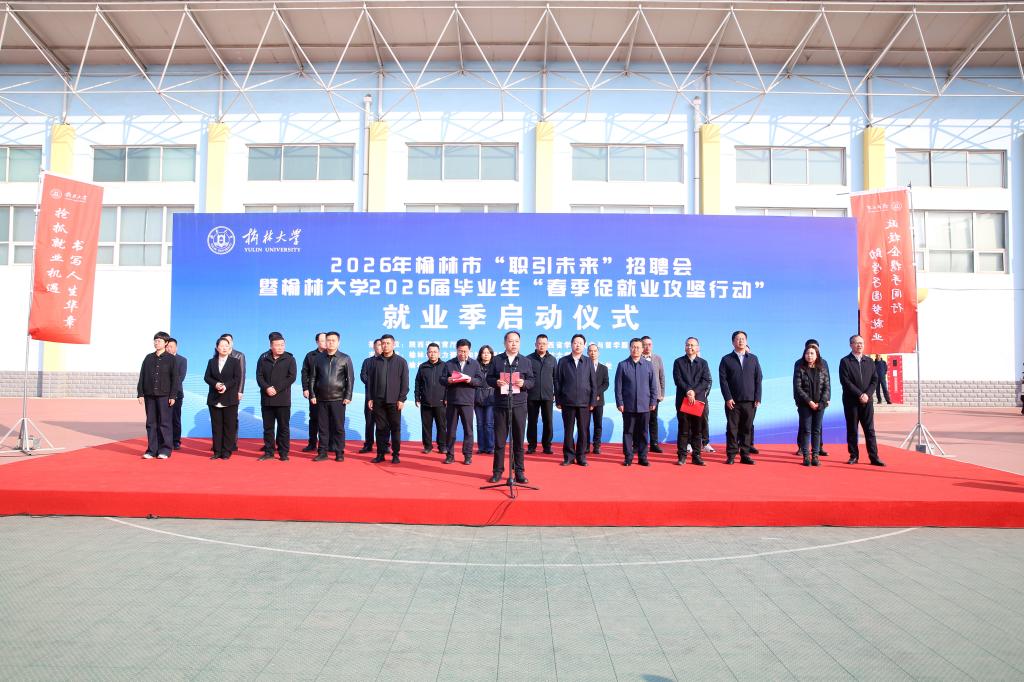 3月30日,2026年榆林市“职引未来”招聘会暨榆林大学2026届毕业生“春季促就业攻坚行动”双选会在榆林大学训练馆成功举办。本次活动由陕西省教育厅及陕西省学生就业与留学服务中心指导,榆林市人力资源和社会保障局与榆林大学联合主办。双选会伊始,在训练馆前举行了就业季启动仪式,榆林大学党委副书记、校长付峰,市人社局党组书记、局长吕明辉出席仪式,仪式由榆林大学党委委员、副校长王刚主持。